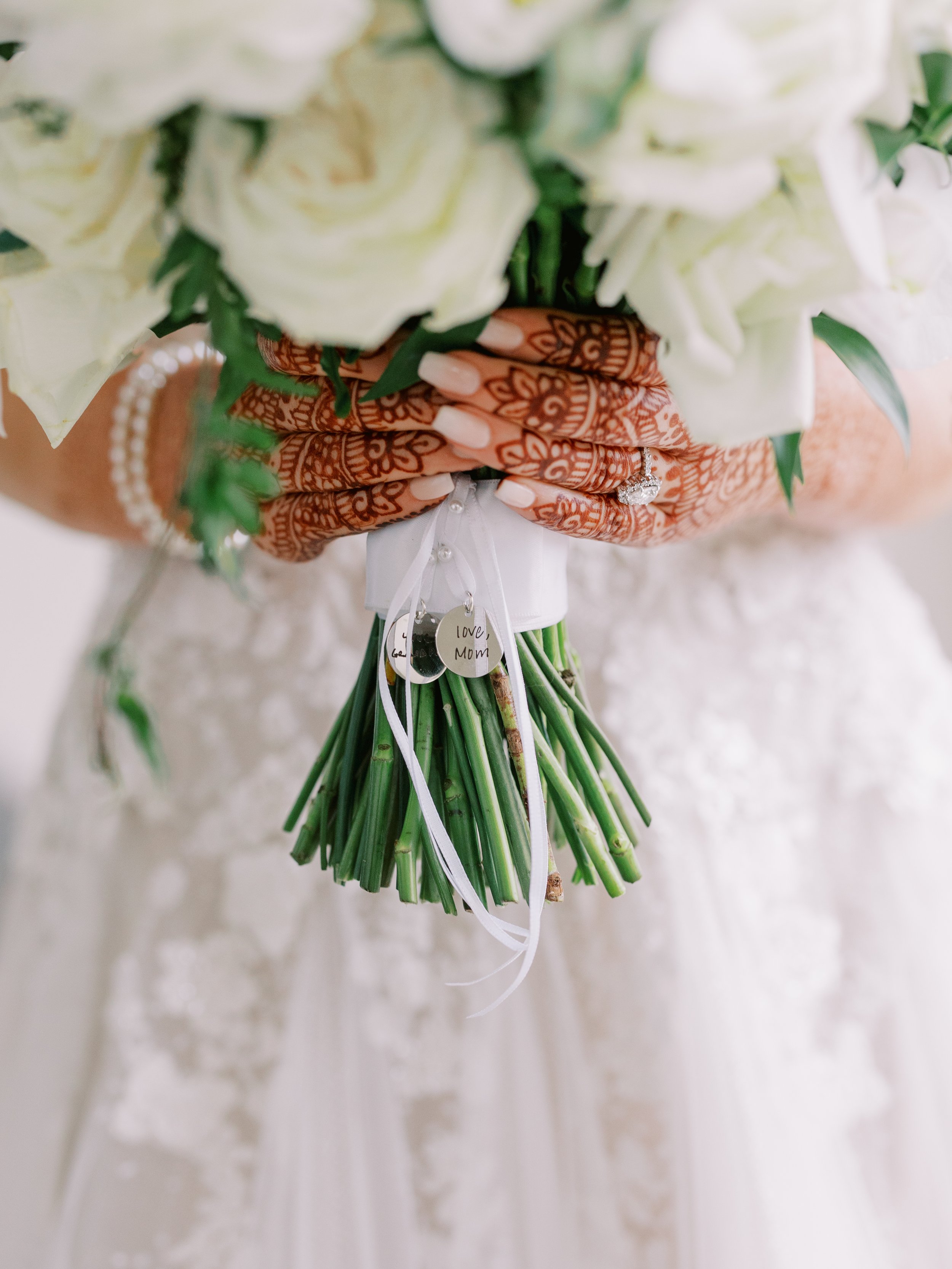 Later in the day, Arienne and Anish exchanged vows again in a serene, Western-style ceremony, framed by lush, abundant floral arrangements in soft blues, creams, and whites. The floral designs by Florals by Cina were nothing short of enchanting—each bloom and petal chosen with intention to evoke a soft, ethereal aesthetic that perfectly matched the elegance of the oceanfront venue.